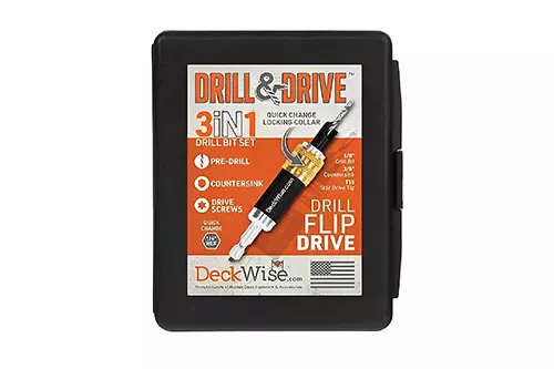 The Drill & Drive toolkit is a 3-in-1 pre-drilling tool that makes the process 3x faster than standard drilling and driving. The kit comes with all the bits you need to pre-drill, countersink and drive screws into the decking. With its ease of use, this Drill & Drive toolkit is a must-have for deck building projects, and nearly any home renovation task.
