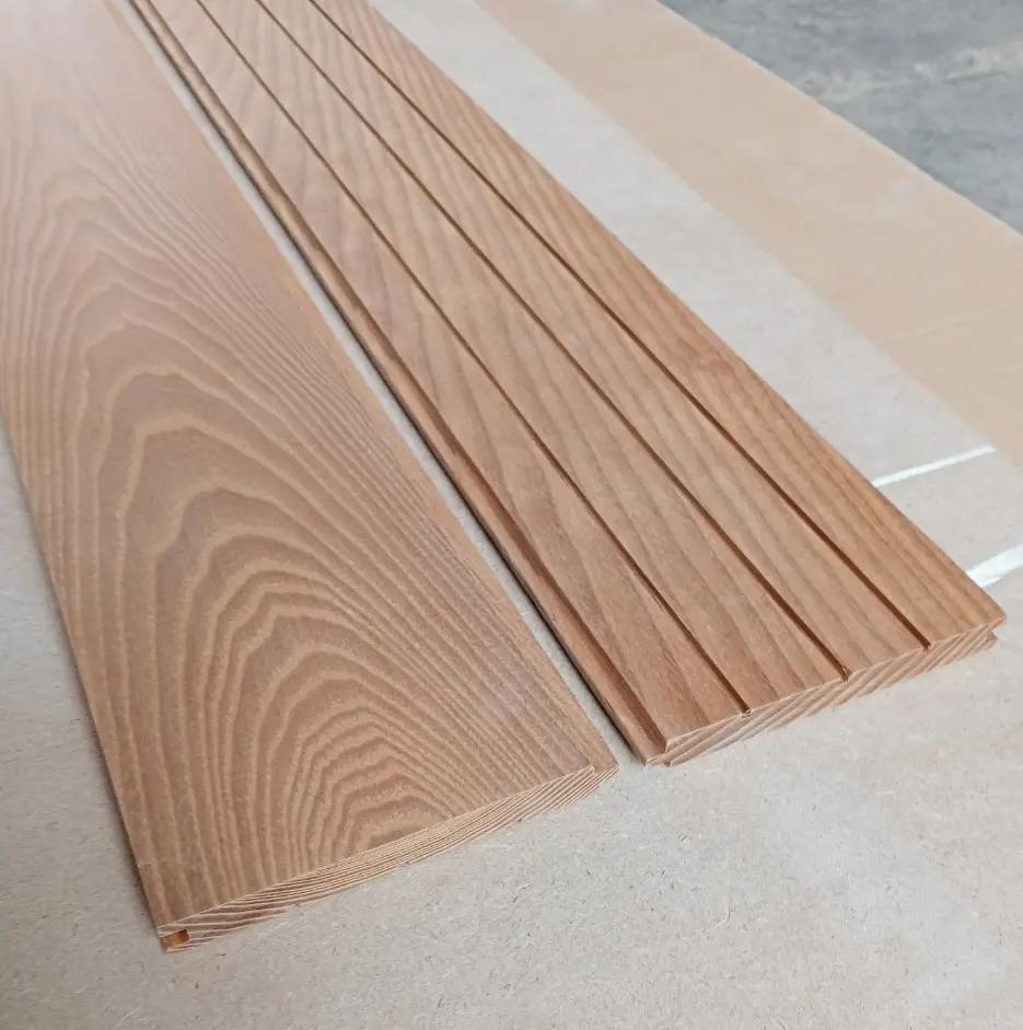 Premium Thermally Modified ASH SIDING is a natural wood material with an attractive look and natural durability. Due to the thermo-modification process, wood becomes durable for at least 25 years. In the process, wood changes its molecular structure and becomes similar to 350-year lumber. It is a 100% Green product with all the advantages of natural wood.