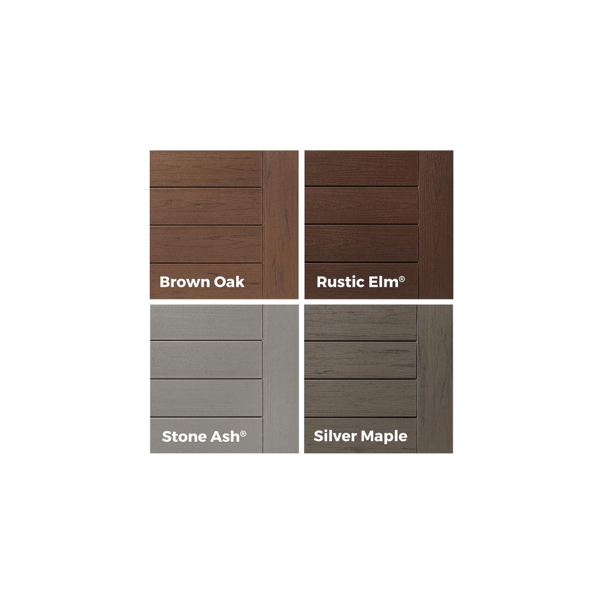 Brown Oak, Rustic Elm, Sandy Birch, Silver Maple, Stone Ash